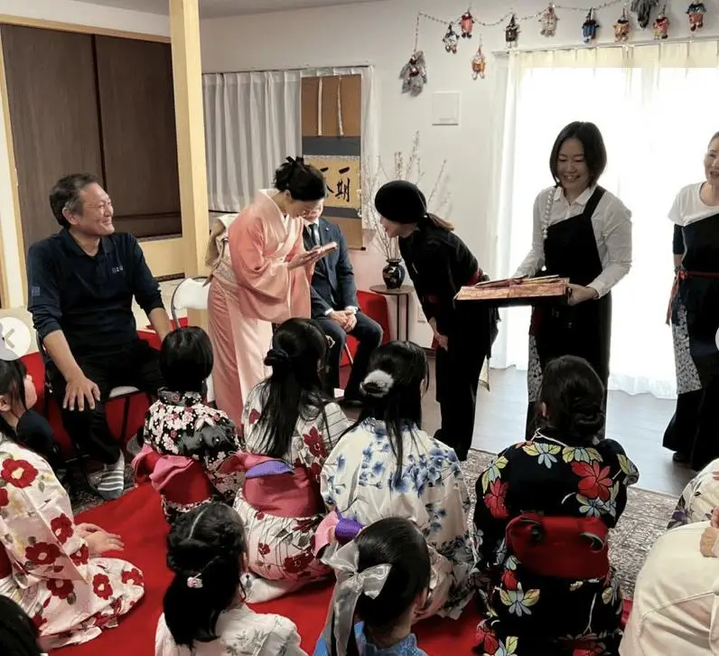 這次她回到老家福岡,以「兒童健康成長大使」的身份參加活動,還陪孩子們一起體驗茶道。