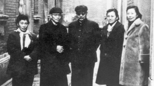 1961年,中共特工頭目李克農(中)訪問上海八路軍辦事處舊址,沈安娜(右一)陪同。(網絡圖片)