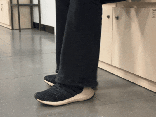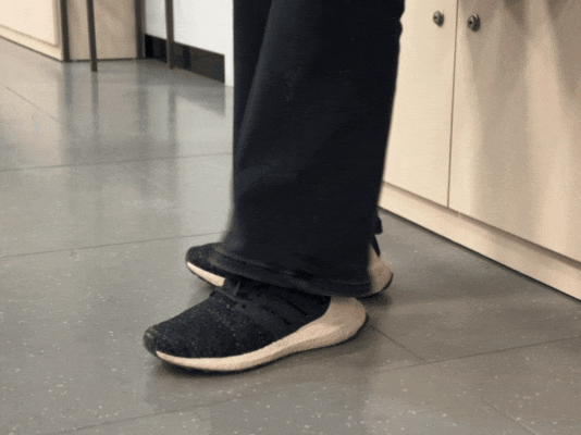 坐在有直背及把手的椅子上,將腳跟置放於地上,然後儘量以最大幅度及最快速度,腳趾拍地10次。