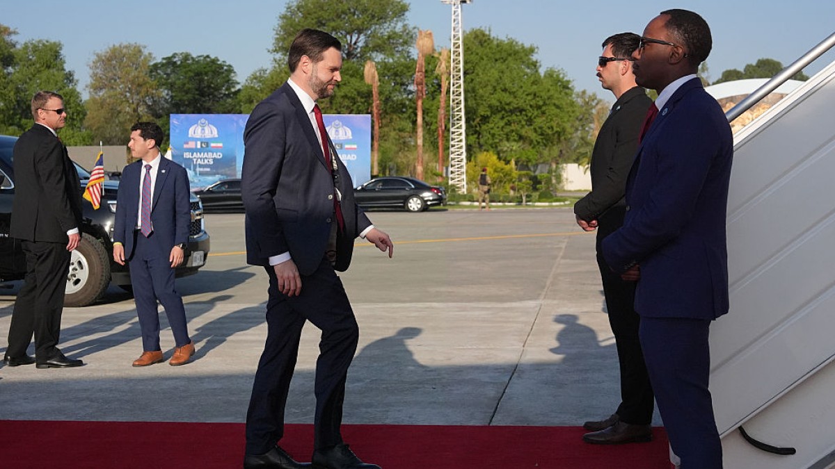 2026年4月12日,美國副總統約翰·迪·萬斯在伊斯蘭堡與伊朗官員會談後,離開塞雷納酒店前往努爾汗空軍基地,準備離開巴基斯坦。(Ghulam RASOOL/ AFP via Getty Images)
