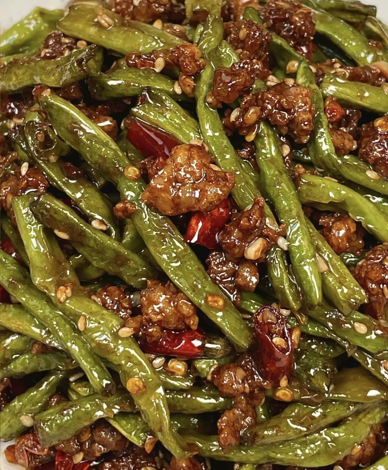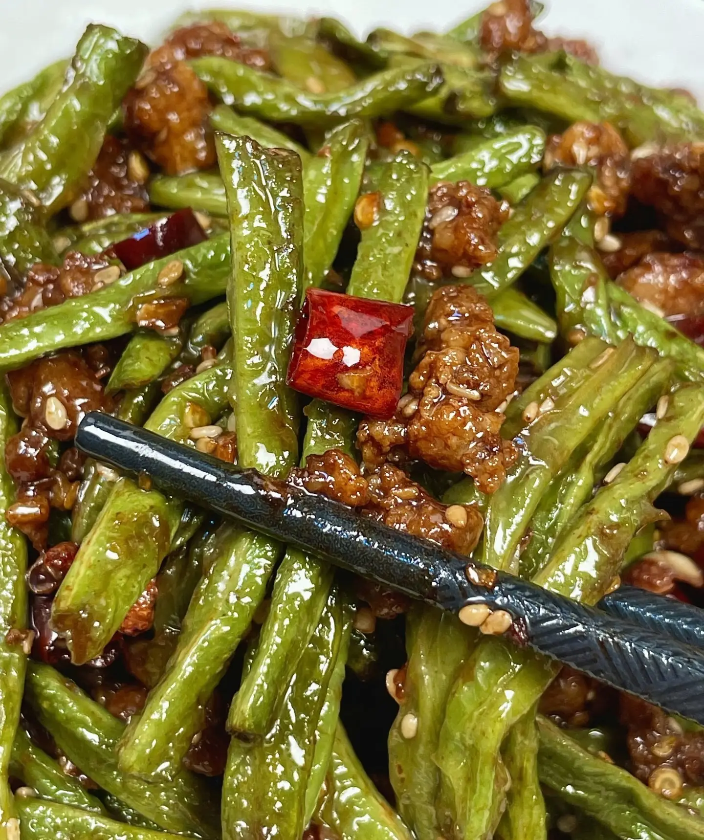 調味就很簡單了,加入適量的生抽、一點點老抽調色,如果喜歡可以加一丟丟糖提鮮,鹽的話根據口味酌情添加,因為生抽已經有鹹味了。繼續翻炒個一兩分鐘,讓豆角充分吸收肉末和調料的香味,最後撒上一點熟白芝麻或者蔥花點綴一下,就可以出鍋啦!