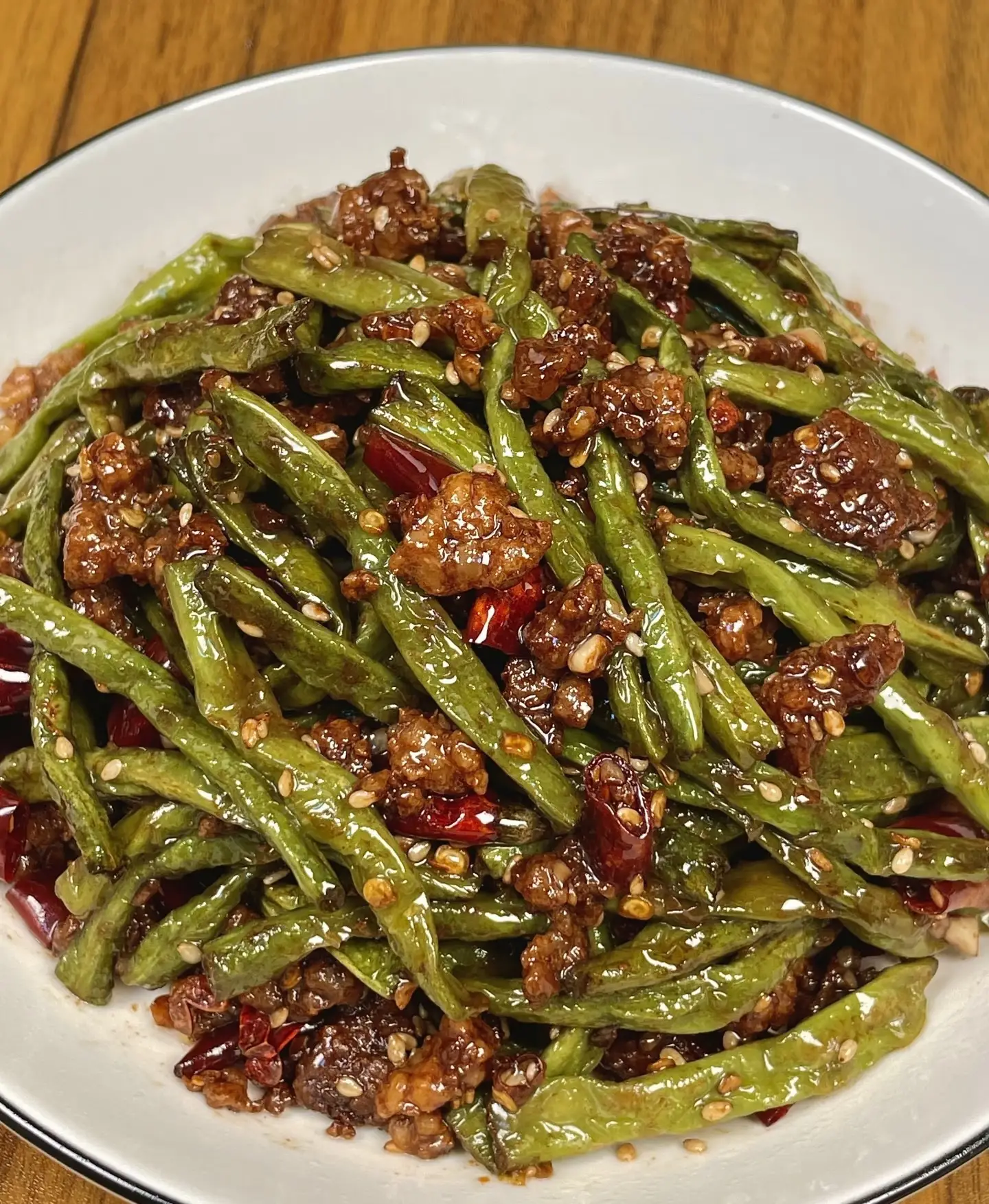 說起來,這道菜還是我大學時候跟食堂一個川菜師傅「偷師」來的。那時候特別愛吃食堂的干煸豆角,總覺得那味道特別正,豆角干香的,肉末也特別入味。有一次吃完飯,我厚着臉皮去後廚請教了師傅,他看我這麼誠心,就簡單教了我幾招,尤其是「干煸」這一步,師傅說一定要把豆角的水分煸干,才能出那種獨特的干香味。回家一試,果然效果不錯,雖然可能沒有食堂師傅做得那麼爐火純青,但也足夠解饞了。從那以後,這道菜就成了我的拿手好菜之一,每次朋友來家裏吃飯,點菜率超高!