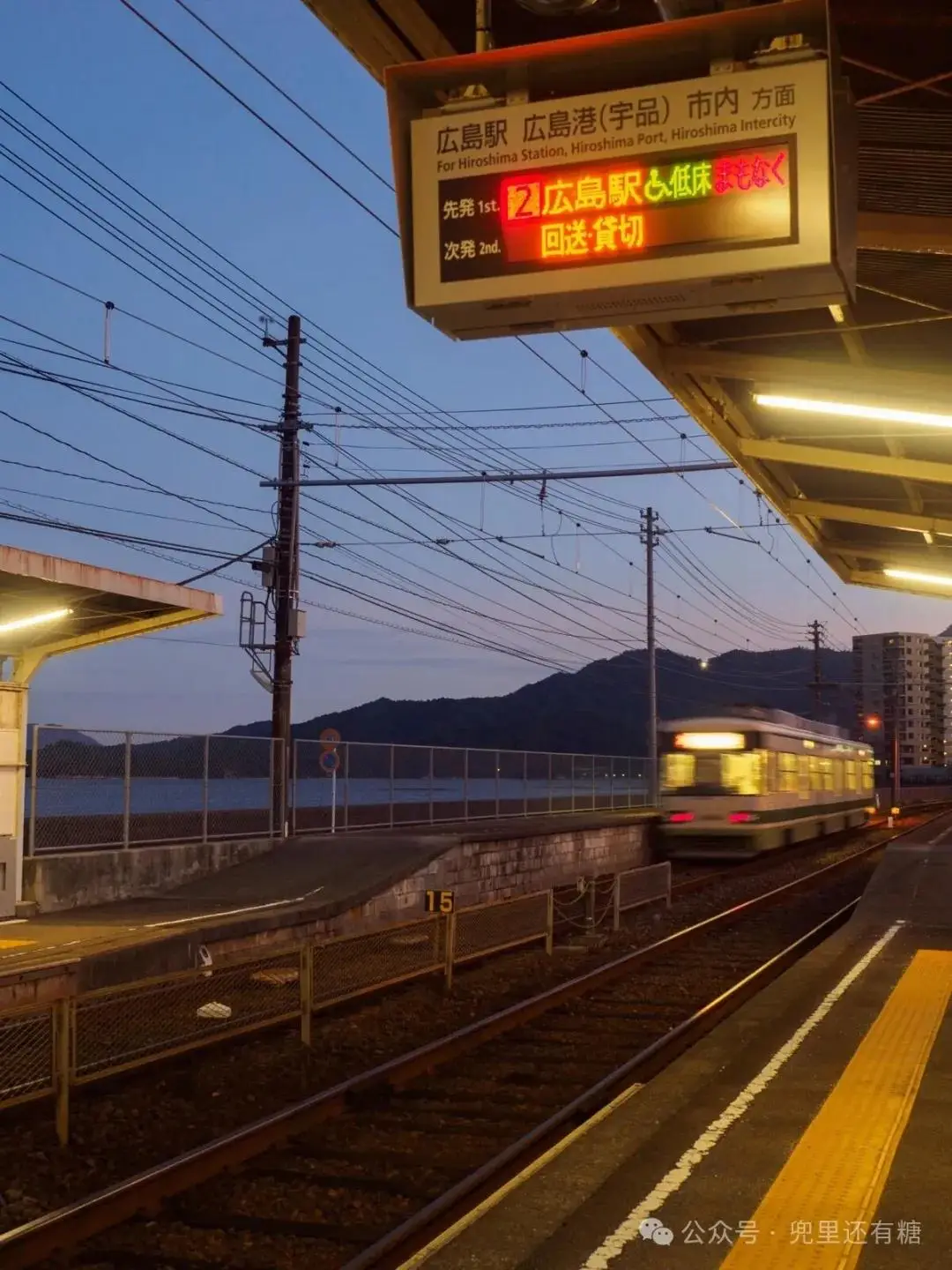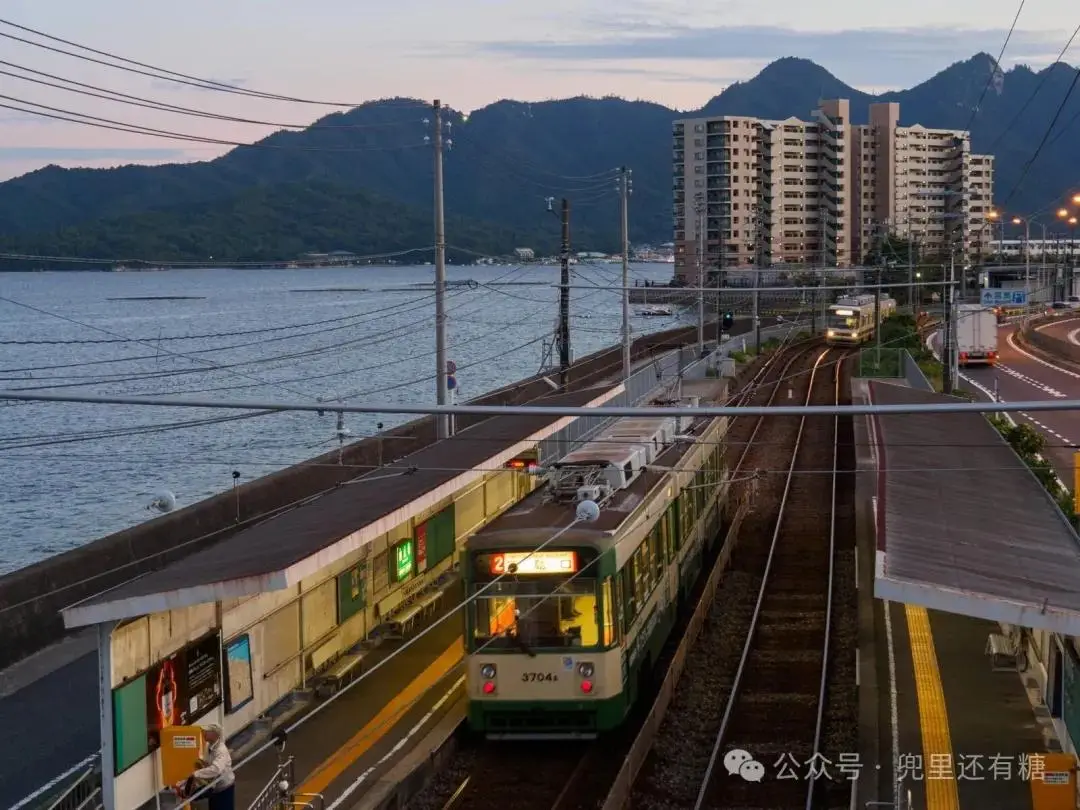 車站、城市和宮島的村莊開始亮起燈光。