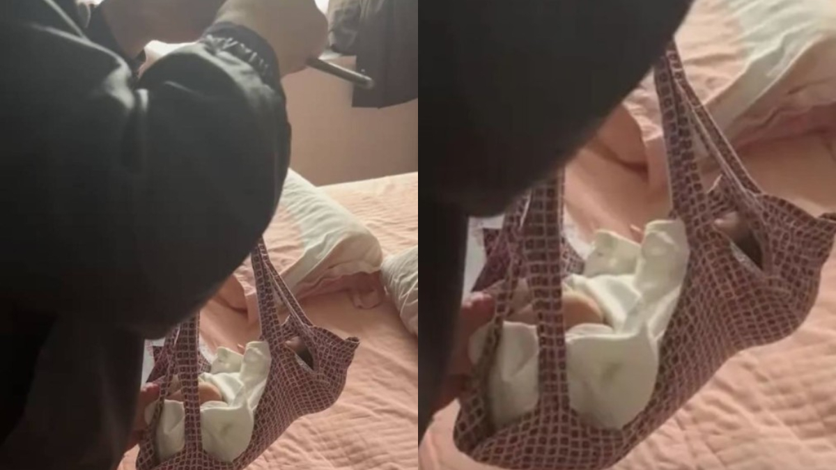 這位母親表示,被砸到的女兒出生僅4天,從其拍攝的視頻中看到,一名女性工作人員在床上用布將嬰兒包裹後,將其懸掛在老式桿秤的掛鈎上。不料布袋脫落,嬰兒被摔在床上,隨即秤砣滑落砸到女兒。這時一直在啼哭的嬰兒,哭聲戛然而止。