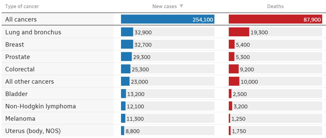 但真正殺人最多的還是肺癌,今年預計帶走19.300條命。