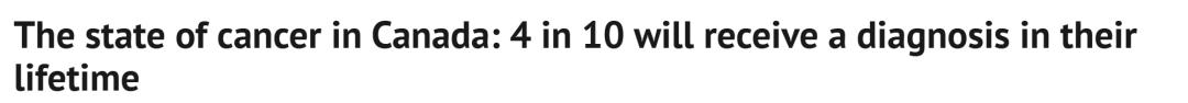 埃利斯的經歷聽着極端,但CMAJ(《加拿大醫學協會雜誌》)這周剛出的報告說,42%的加拿大人這輩子都會得癌症。