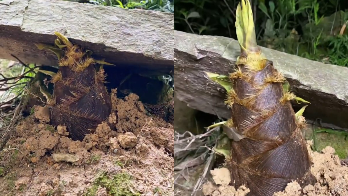 視頻顯示,一株竹筍被壓在一塊大石頭下面,它硬是把厚重的巨石一點點往上頂,最終將其頂開裂縫,破土而出。這是浙江武義攝影師楚過寒拍下了這一幕,畫面相當震撼。