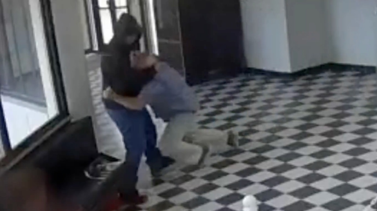 X平台上流出的視頻顯示,一名年輕男子持手槍闖入奧克拉荷馬州保爾斯瓦利高中,男子走入大廳後,試圖朝坐在大廳長椅上的一名學生開槍,但槍沒有響。大廳里另一名女學生見狀,嚇得趕緊逃離。就在這危急時刻,校長摩爾從大廳側邊的一扇門裏面衝出來,像一發炮彈似的撲向持槍歹徒。過程中,歹徒連開數槍,摩爾腿部中槍,但他仍大力將歹徒按倒在大廳長椅上,死死壓住歹徒頭部和握槍的手。隨後,副校長也走上前,幫助摩爾奪下歹徒手中的手槍,並把槍只拿走。