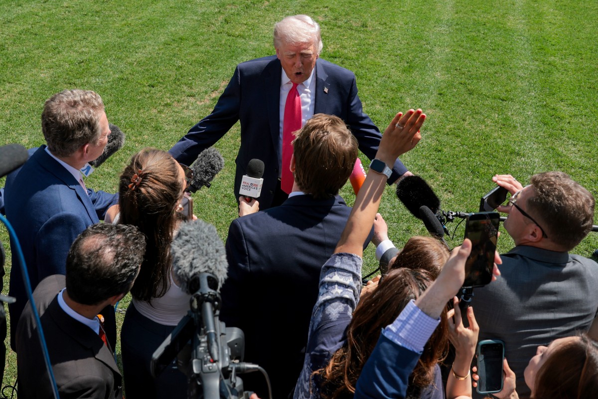 2026年4月16日:美國總統川普在白宮南草坪向媒體發表講話。