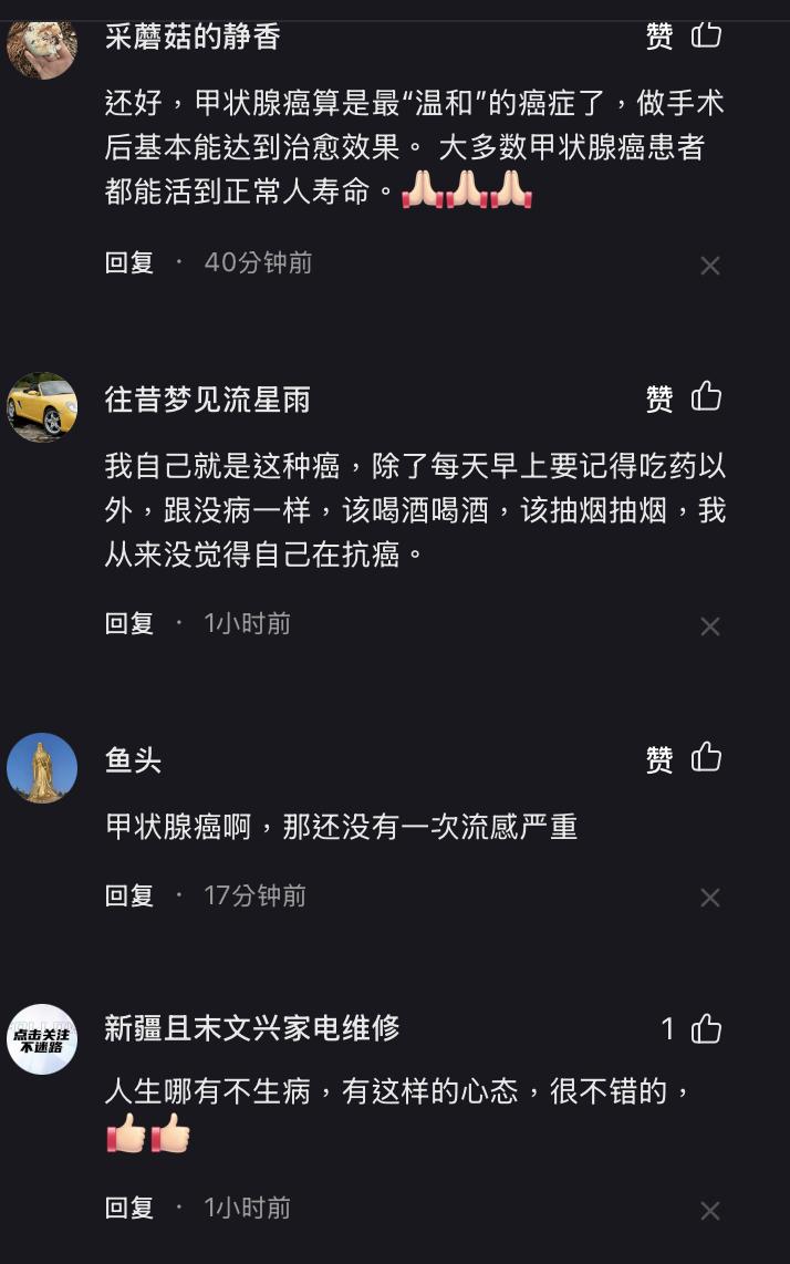 「還好甲狀腺癌算是最『溫和』的癌症了,做手術後基本能達到治癒效果。大多數甲狀腺癌患者都能活到正常人壽命。」