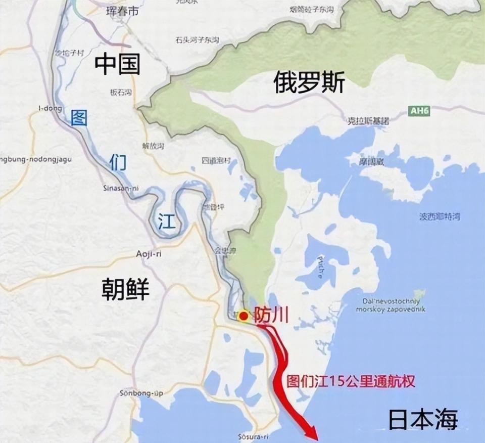 答案是否定的,因為圖們江出海口,只歸俄羅斯和光之國,東大距離出海口,只差15公里。