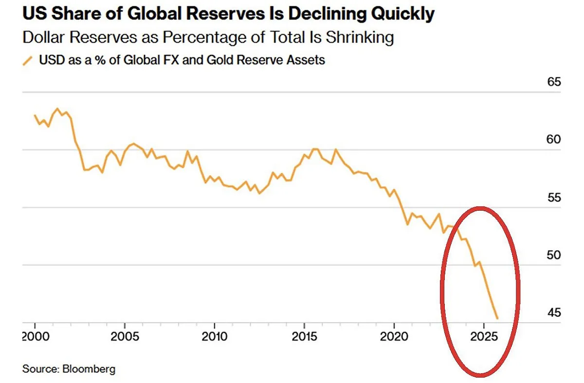 此外,根據 X平台@AsiaFinance引用的 IMF與 SWIFT最新數據,美元在全球官方外匯儲備中的份額已從20年前的70%下降至目前的58%。以美元結算的全球貿易額也從幾年前的54%降至約40%。圖表顯示,美元作為全球核心儲備貨幣的地位雖然尚未出現單一的直接競爭對手,但其主導地位正隨着「去中心化」的趨勢而逐漸鬆動。對於中國這一系列動作是否會引發更大規模的連鎖反應,也是外界持續關注的焦點。