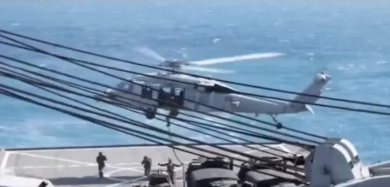美軍登陸伊朗圖斯卡號戰艦並對其進行搜查。圖:翻攝自 x@rainbow78521