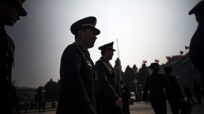 中共官方日前首度披露,包括五名上將在內的九名軍方高級將領長期消失的原因,是「涉嫌嚴重違紀違法」。圖為中共軍隊代表在北京參加兩會的資料圖。(FRED DUFOUR/AFP via Getty Images)