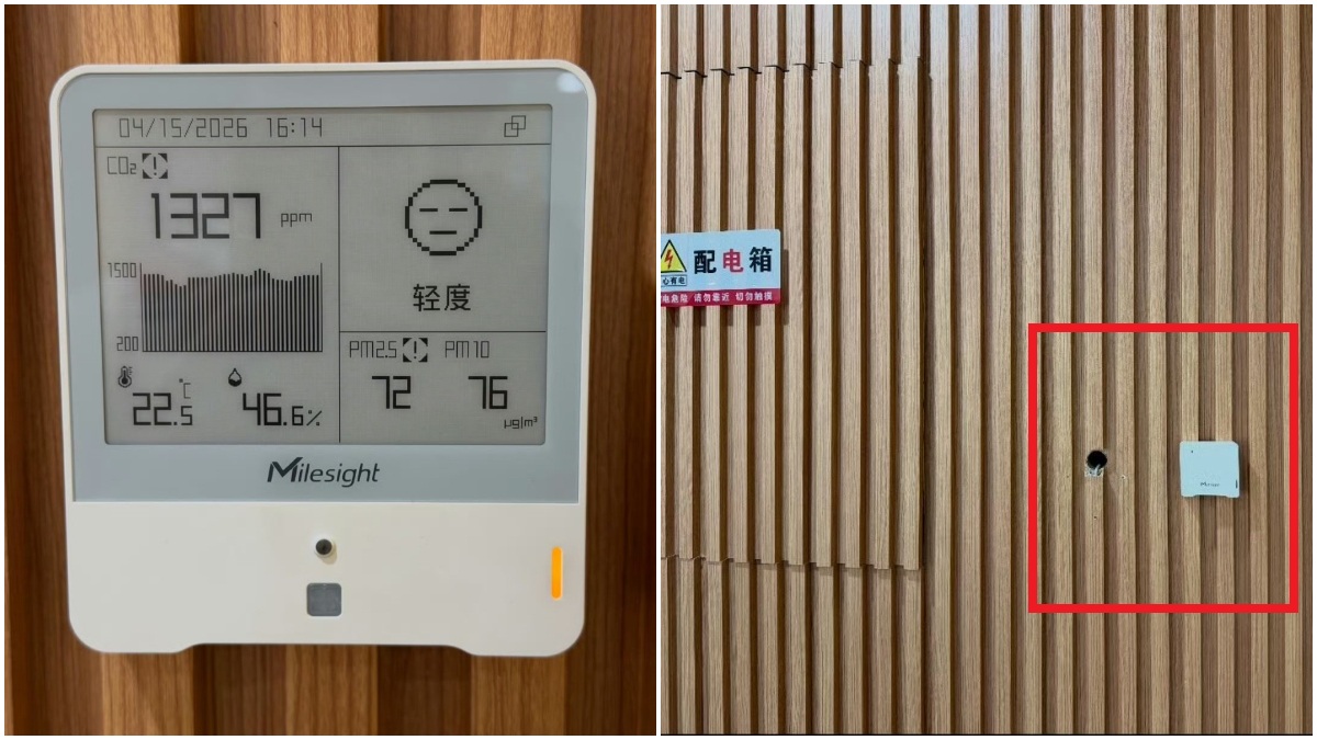 北京時間2026年4月15日下午,北京師範大學學生反饋圖書館的空氣質素檢測儀顯示二氧化碳超標(左圖),當晚校方就將檢測儀拆除(右圖)。(網絡圖片)
