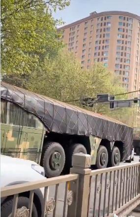 今天,中國河北省周州市街頭,發現至少三輛新型東風-27高超音速武器導彈系統的中國移動發射器。