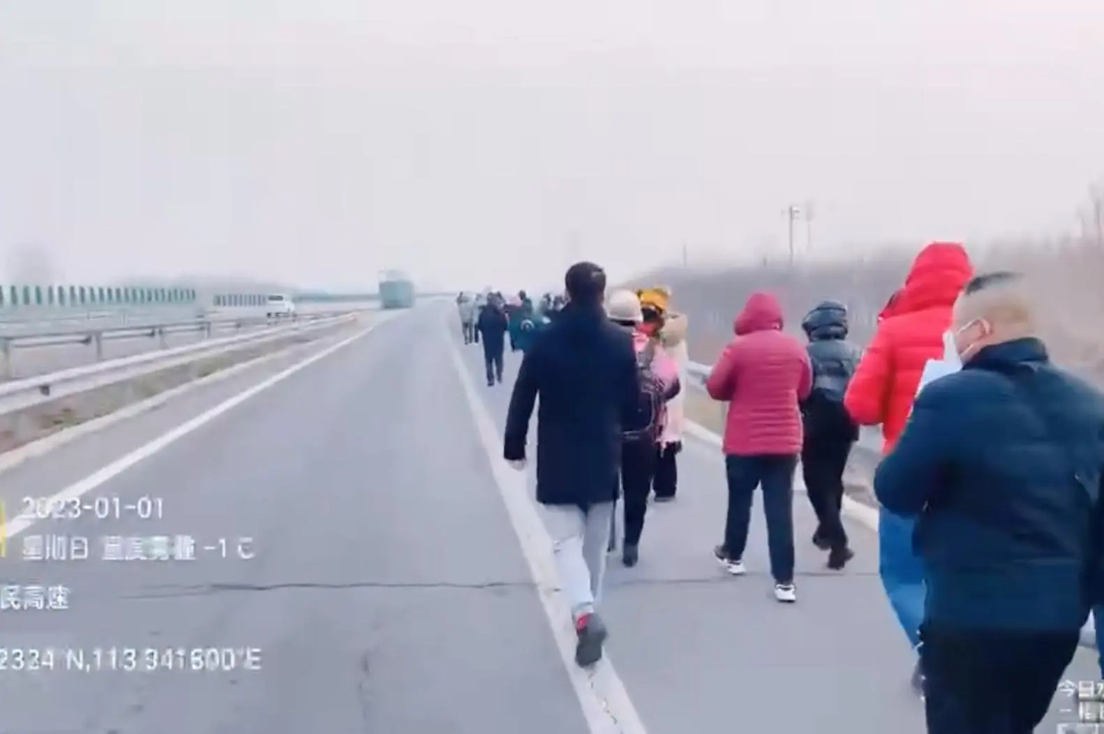 示意圖。圖為2023年1月1日,上百名河南村鎮銀行儲戶徒步上鄭州市高速路上維權。(視頻截圖)