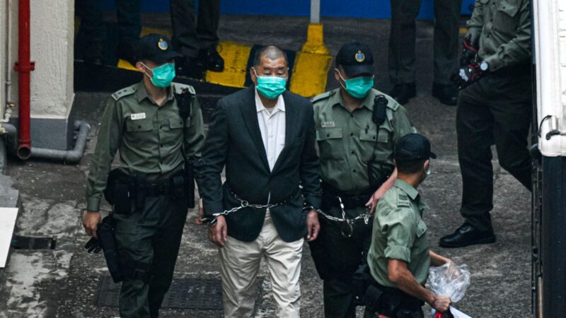 圖為黎智英從看守所被押上囚車。(Keith Tsuji/Getty Images)