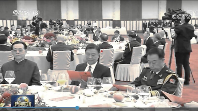 2020年9月30日,中共國家前副主席李源潮(中間)和中共軍委前副主席范長龍(右一)現身「十一」招待會。(視頻截圖)