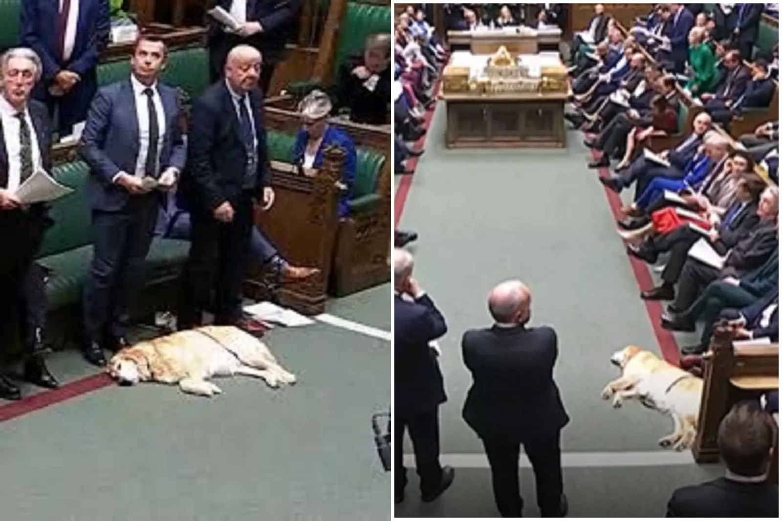 英國國會在本月21日開議期間,有不少民眾從直播鏡頭看到,一隻黃金獵犬竟公然在議場中,大喇喇躺地豪邁睡覺,引發網友熱議。事後有議員出面解釋,大家才驚覺,這隻黃金獵犬不僅超越黨派,身份更是驚人。