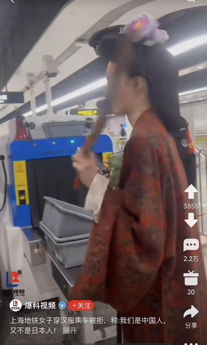 視頻中,女子身穿漢服,配戴傳統頭飾,在上海地鐵安檢處遭工作人員阻擋,未能即時乘車。其同伴在旁錄影並不滿表示:「這是傳統服飾,我們是中國人……為什麼不能乘坐地鐵?」
