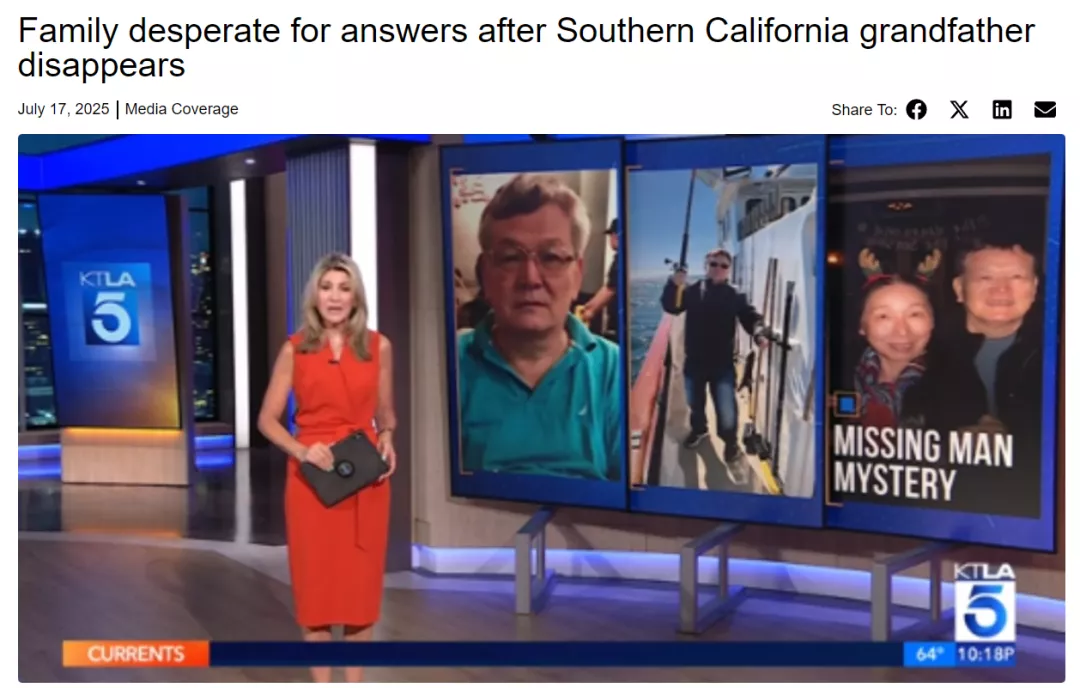 根據執法部門公佈的信息,家屬最初認為侯乃平最後一次被人見到是在2025年5月4日,但聯邦調查人員後續確認其實際失聯時間應為2025年3月16日。