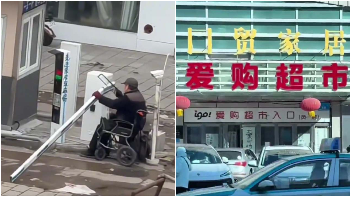 4月以來,大陸社交媒體熱傳視頻顯示,海拉爾一位老人多次坐着輪椅趕到國貿家居商場樓下,用鋸子鋸斷停車場出口的收費杆,然後現場指揮車輛通過,讓車主享受「免費停車」。鋸下的收費杆,他或是扔在地上,或是扛在肩上帶走。