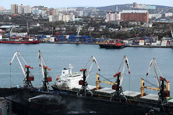 圖為2019年4月25日,俄羅斯遠東港口符拉迪沃斯托克(原中國名字:海參崴)的煤炭碼頭。(Kirill Kudryavtsev/AFP)