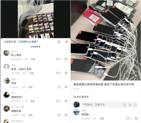 抖音、小紅書平台充斥大量電詐招募信息,吸引眾多年輕人回應。(網絡截圖)