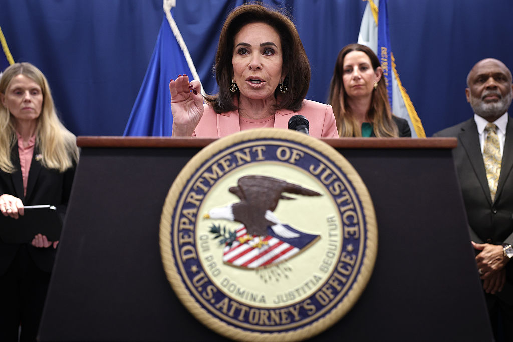 2025年10月15日,哥倫比亞特區聯邦檢察官珍妮‧皮羅(Jeanine Pirro)在華盛頓特區聯邦檢察官辦公室舉行的新聞發佈會上發表講話。