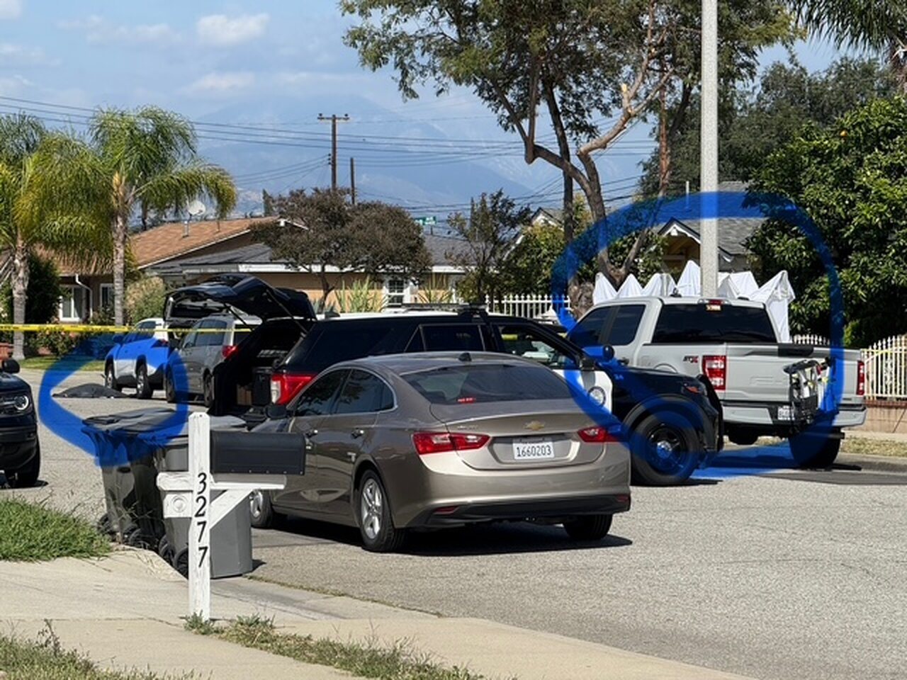記者在現場看到,槍案共有兩個現場,其中一個現場在住宅前院行人路上; 另一個現場位停靠在同一住宅前一輛汽車駕駛座附近的車輛邊上。 兩個現場相差目測相距不到50碼。