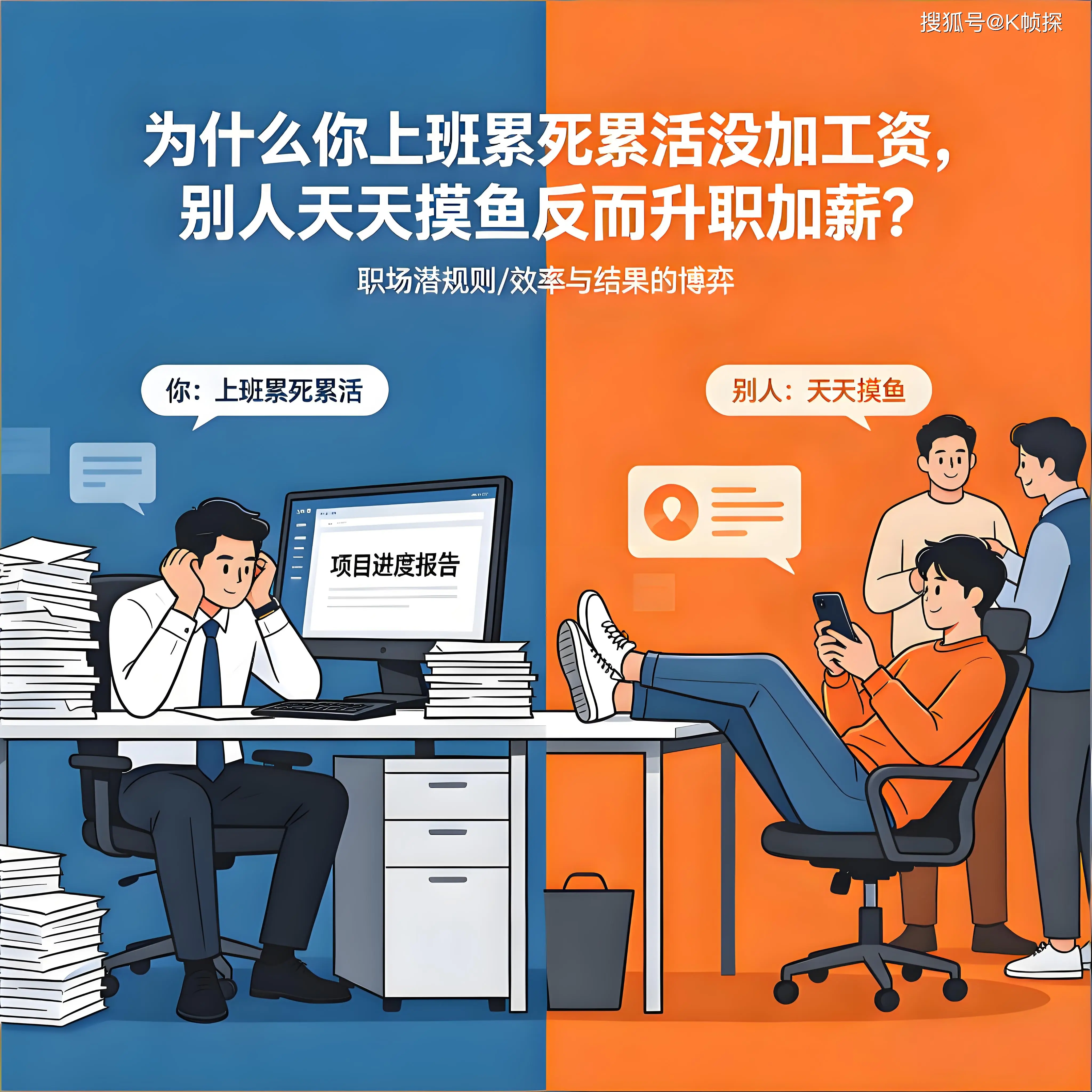 有沒有發現一個扎心的現象?你每天第一個到公司,最後一個走,茶水間都不敢多待兩分鐘,手裏的活堆得像山,加班加到頭暈眼花,一年到頭盼着加工資,結果老闆要麼裝糊塗,要麼畫大餅;而你身邊總有那麼幾個人,每天上班刷手機、聊八卦,活兒能推就推,能敷衍就敷衍,看着天天摸魚,卻總能得到老闆賞識,甚至升職加薪,比你混得還風生水起。