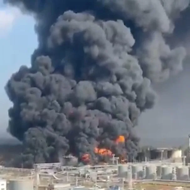 烏克蘭無人機精準擊中俄羅斯諾沃沙赫京斯基煉油廠,引發猛烈爆炸與大火,導致該廠徹底停擺。 圖:翻攝自 X @Daractenus