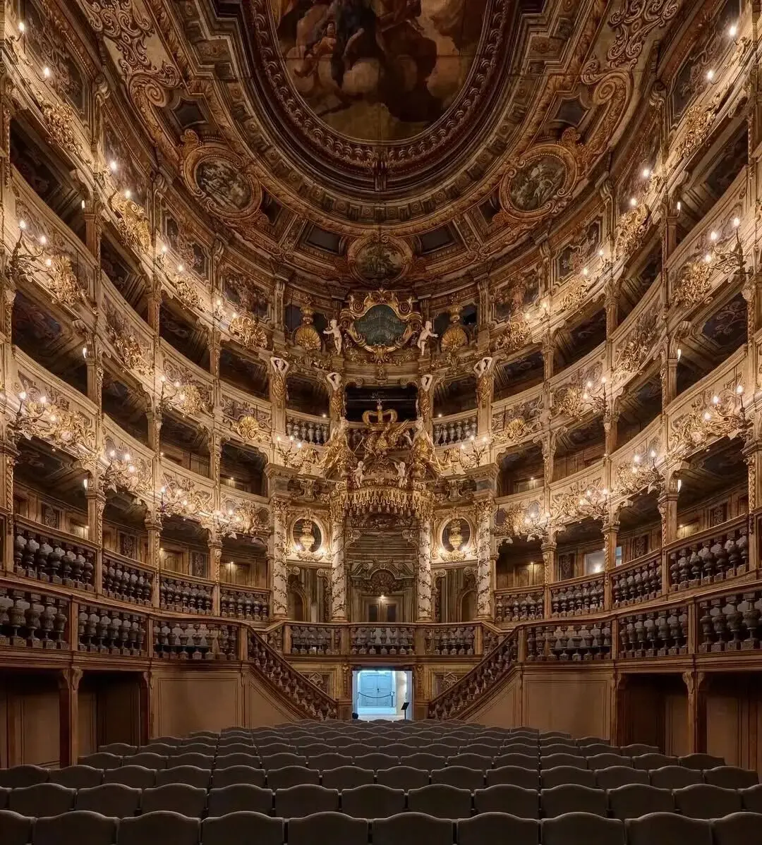 拜羅伊特侯爵歌劇院是巴洛克式的劇院,全部用木頭建造,因此具有無與倫比的聲音效果。