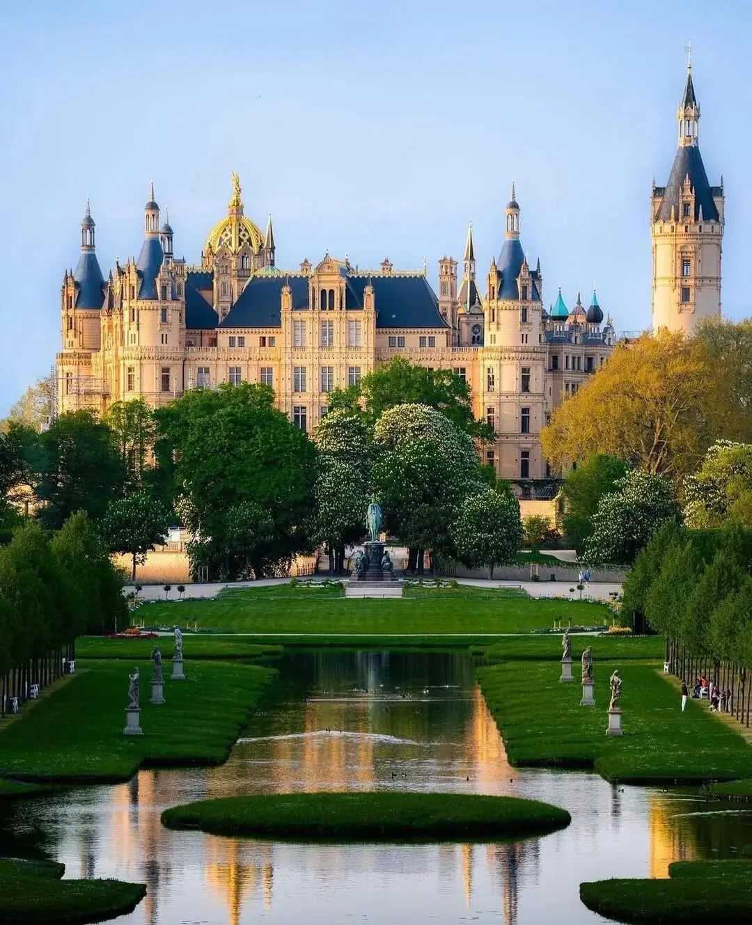 什未林宮位於湖心島上,被譽為「北德的新天鵝堡」,早上晨霧還沒有消散的時候,宮殿倒映在水中猶如一場未醒的夢。
