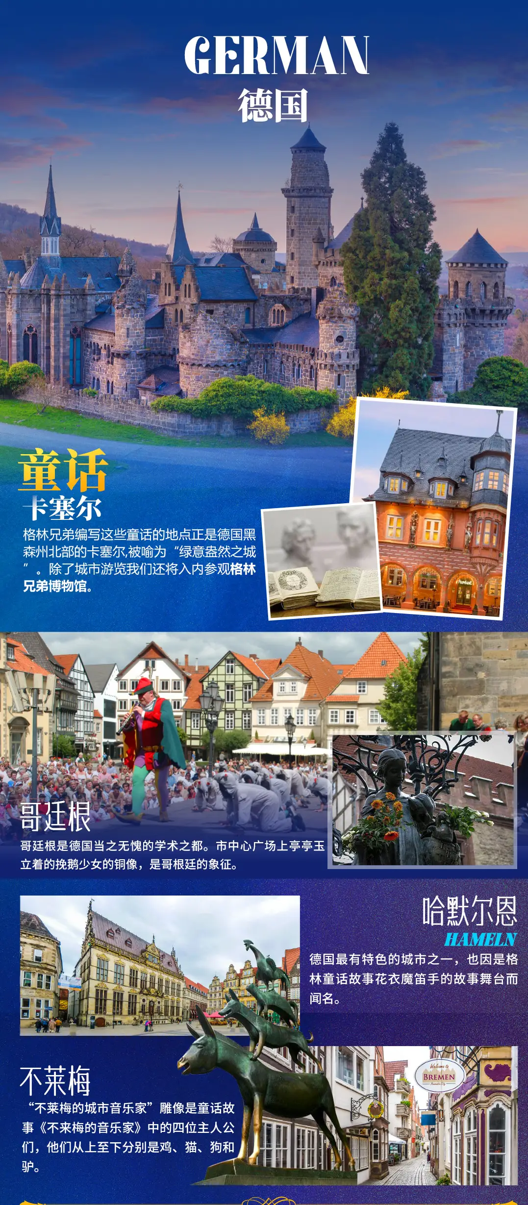 卡塞爾、格丁根、哈默爾恩、不來梅,四城同列於德國童話之旅。