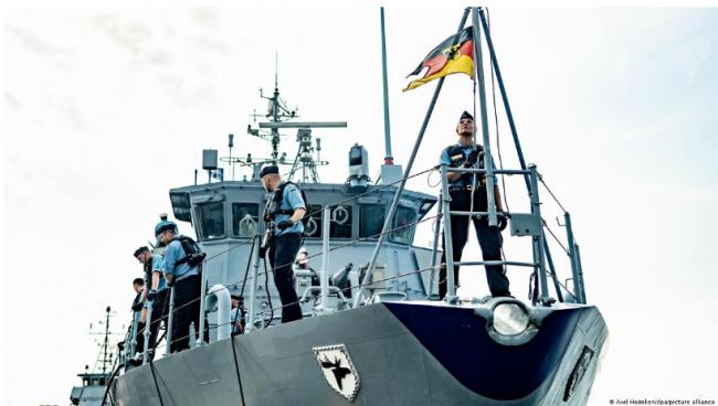 德國多次表示,一旦伊朗戰爭結束,將協助保障霍爾木茲海峽的航運安全。圖為2023年7月11日,德國海軍掃雷艇「巴德·貝文森」號離開海軍基地執行北約任務。圖像來源: Axel Heimken/dpa/picture alliance