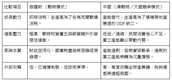 俄羅斯與中國的實踐證明了軍工產業在短期內確實能「粉飾」GDP數據,並解決部分就業問題。但兩國正共同走向一個危險的交會點: