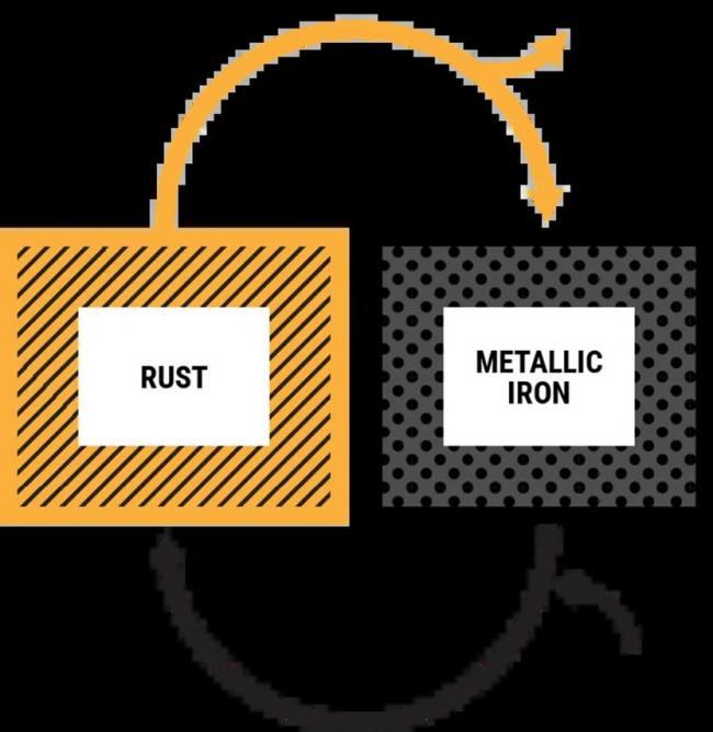 一般來說,氧化生鏽不算優點,鐵空氣電池卻能利用這個電化學反應來發電。電力過剩時,對電池充電,讓鐵鏽還原成鐵,將能量先儲存下來。需要電力時,再讓鐵與空氣中的氧產生作用,生鏽的同時會釋放出電子,產生電力。