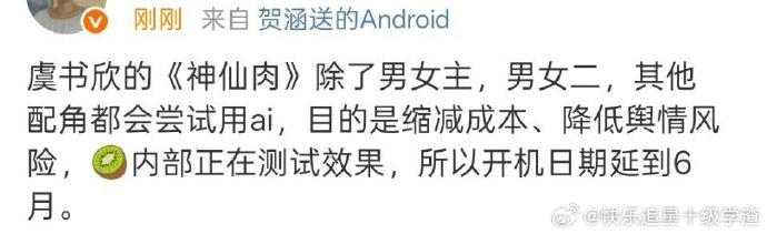 大陸影視產業為降低最高50%的製作成本並規避藝人違約風險,正積極導入AI技術。近日,女星虞書欣新戲《念相思》(原名《神仙肉》)傳出除男、女主角及兩位配角外,其餘配角皆將以AI演員取代。該劇預計延後至6月開機,若傳聞屬實,將成為大陸首部AI藝人參與演出的長劇。
