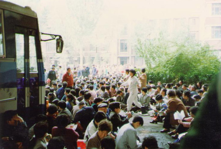 當天中共安插了許多便衣,企圖煽動學員,製造事端,引起騷亂。下午2、3點鐘時,當時在清華大學就讀精密儀器與機械學系的王欣(現居美國)看到,有一個女子騎着電單車,戴着頭盔和口罩,來到學員跟前,鼓動大家去怎麼做怎麼做,似乎要把事情鬧大。