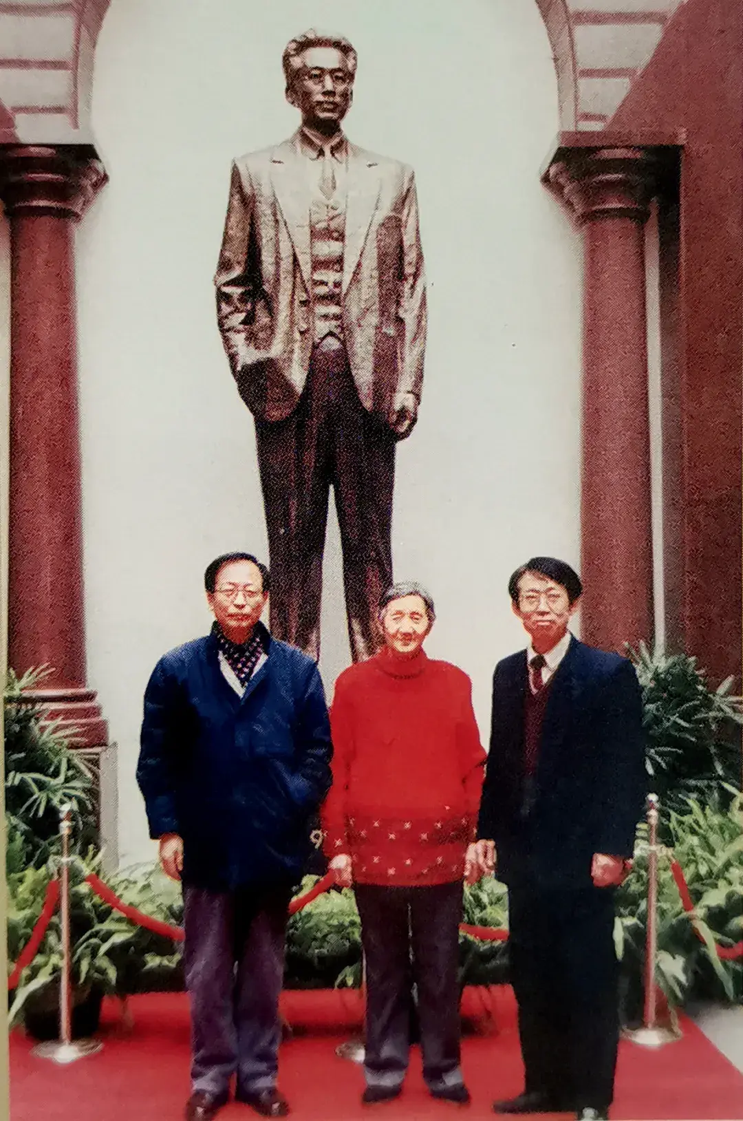 1999年1月18日,瞿秋白紀念館新館落成之日,瞿秋白女兒瞿獨伊(中)、中國社科院近代史所研究員陳鐵健(左)與館長趙庚林合影。