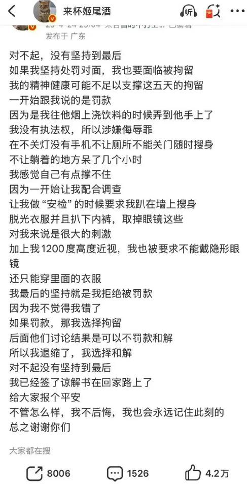 儘管警方通報稱程序合規、雙方「自願和解」,但輿論顯然難以接受。公眾真正擔憂的是:當表達意見、制止違規行為,可能換來羞辱與壓迫,這條界線究竟在哪裏?