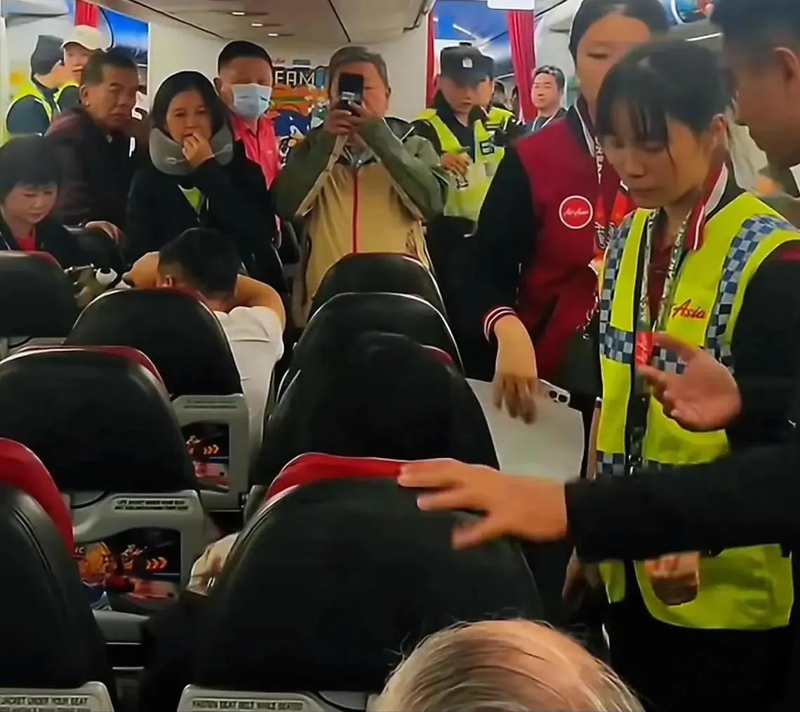 由於這名中國男子始終拒絕下機,嚴重耽誤航班運作,兩名馬來西亞航警只好採取強制措施,直接將這名中國男子從座位上架起,帶離機艙進行調查。