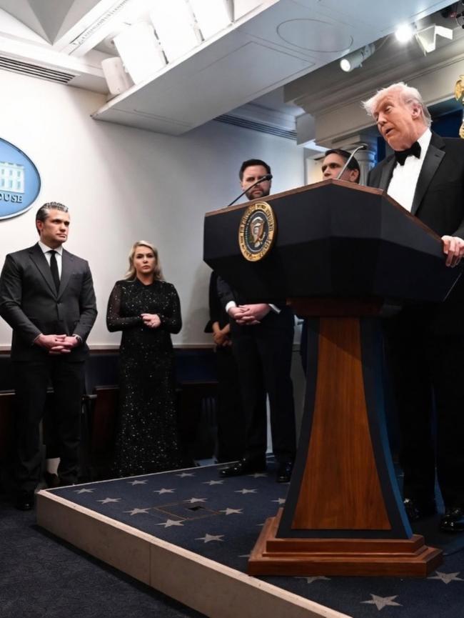 從照片可以知道,包括副總統JD·萬斯、國務卿馬可·魯比奧、國防部長皮特·赫格塞思以及代理司法部長托德·布蘭奇在內的很多人,都身着晚禮服出現在辦公室,顯然他們是直接從酒店趕到這裏的,總統沒有給予他們換衣服的時間。