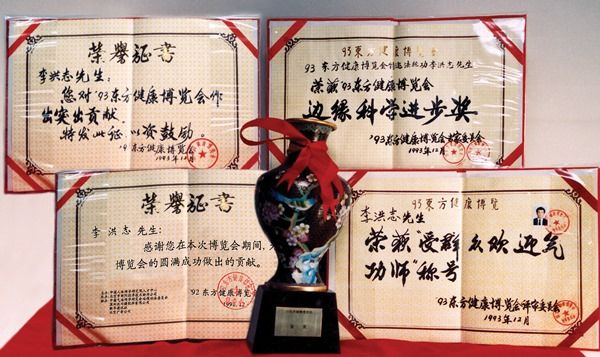 1993年北京東方健康博覽會上,李洪志大師獲博覽會最高獎「邊緣科學進步獎」和「特別金獎」及「受群眾歡迎氣功師」稱號。(明慧網)