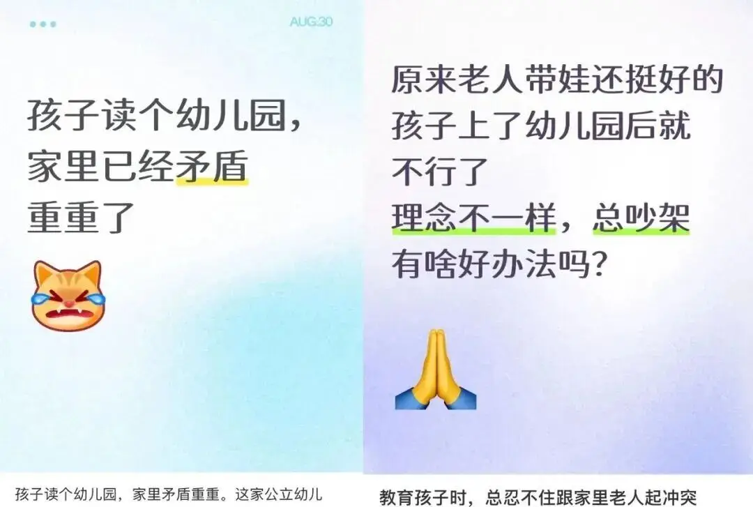 這時候,不同家庭的育兒需求更複雜化、多樣化,育兒矛盾、代際差異也跟着一點點冒了出來……