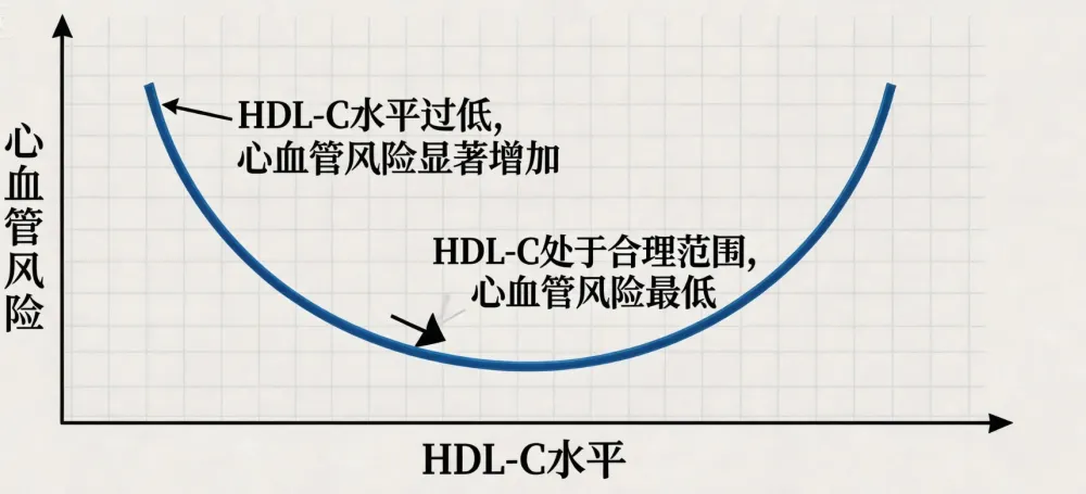 但最新的《全面管理血脂相關心血管風險專家共識(2025)》明確指出:好膽固醇與心血管風險,根本不是簡單的「越高越好」線性關係,而是一個——U型曲線。