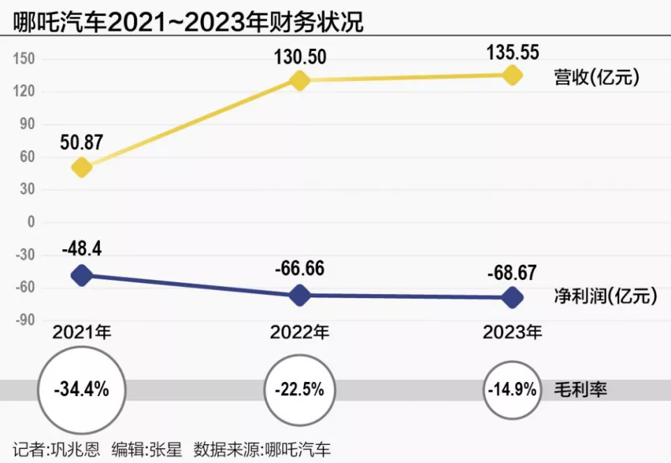 很長一段時間裏,哪吒是靠「賣一輛虧一輛」在維持規模的。數據顯示,2021-2023年,合眾新能源累計淨虧損高達183億元,平均每賣一輛車虧掉超過8萬元。和那個瘋狂年代裏無數倒下的品牌一樣,半死不活,棄之可惜。