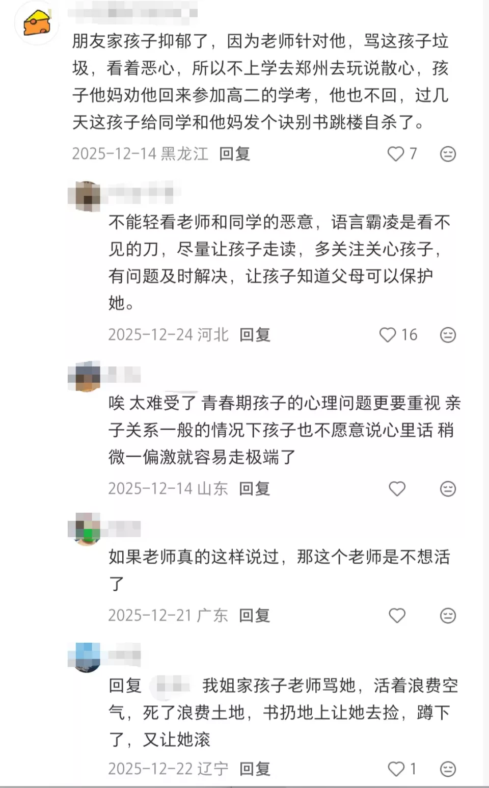 這位班主任總是一副高高在上的姿態,動轍用各種極端詞彙對學生進行貶低和羞辱。僅僅因為安慰了被老師訓斥的同學幾句,他就被班主任狠狠人身攻擊了一通。